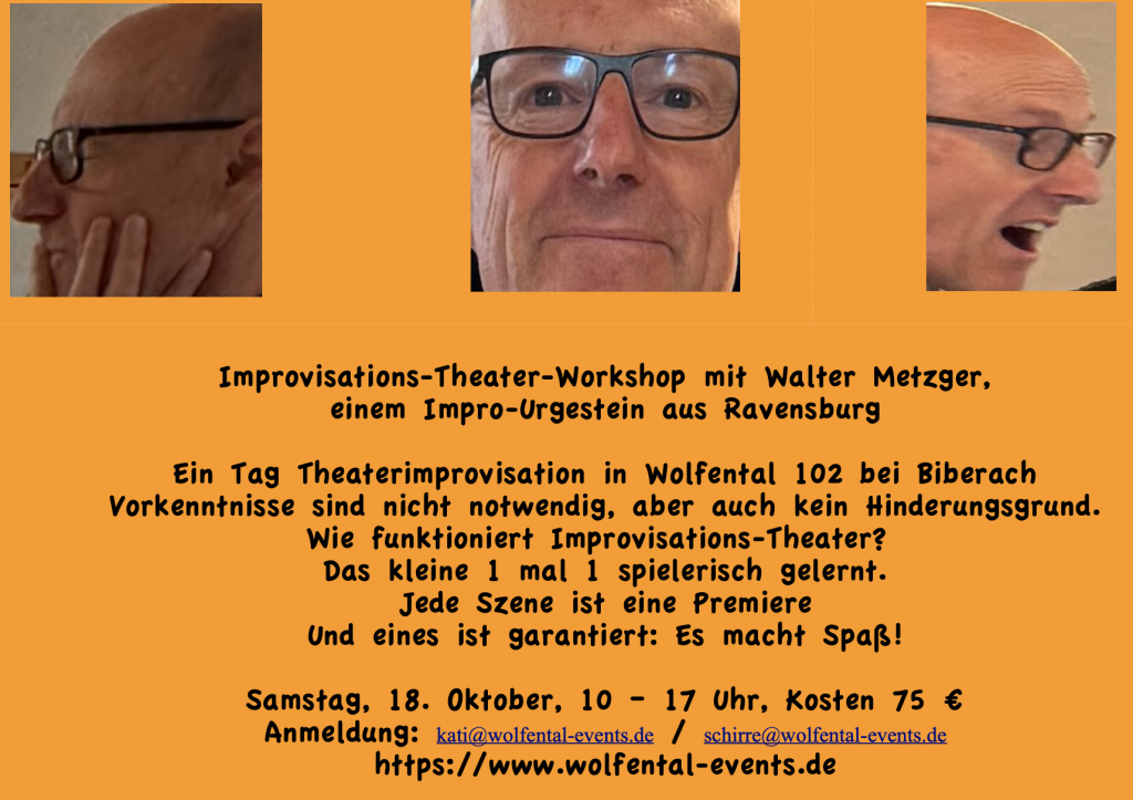 | Impro Workshop Wolfental | 18.10.2025 10:00 – 17:00 Uhr |